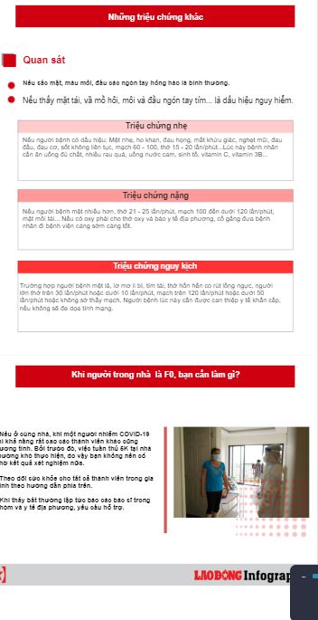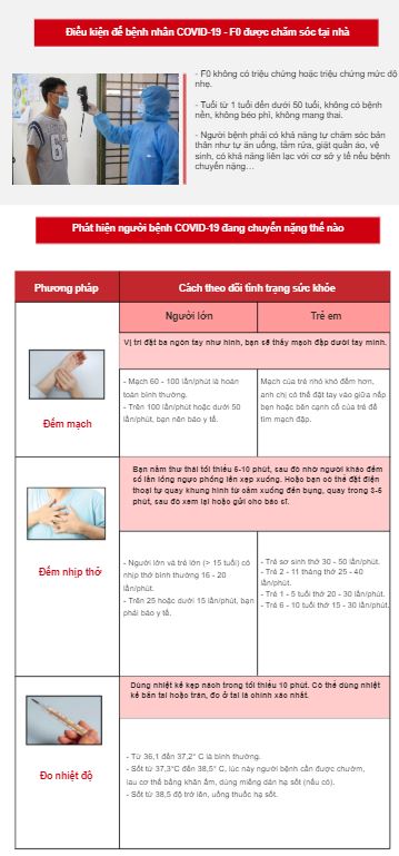 Bộ Y tế đã ban hành Quyết định 4156/QĐ-BYT về việc ban hành tài liệu Hướng dẫn chăm sóc người nhiễm COVID-19 tại nhà. Trong đó hướng dẫn nhiều phương pháp giúp người chăm sóc đánh giá, theo dõi tình trạng sức khỏe của F0.