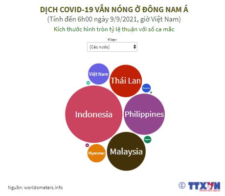 Theo trang worldometers.info, tính tới 6 giờ ngày 9/9/2021, các nước Đông Nam Á ghi nhận thêm hơn 70.000 ca mắc COVID-19 so với 1 ngày trước, Trong đó, Malaysia đứng đầu khu vực về ca mắc mới với hơn 19.000 ca, tiếp đến là Thái Lan, Philippines…