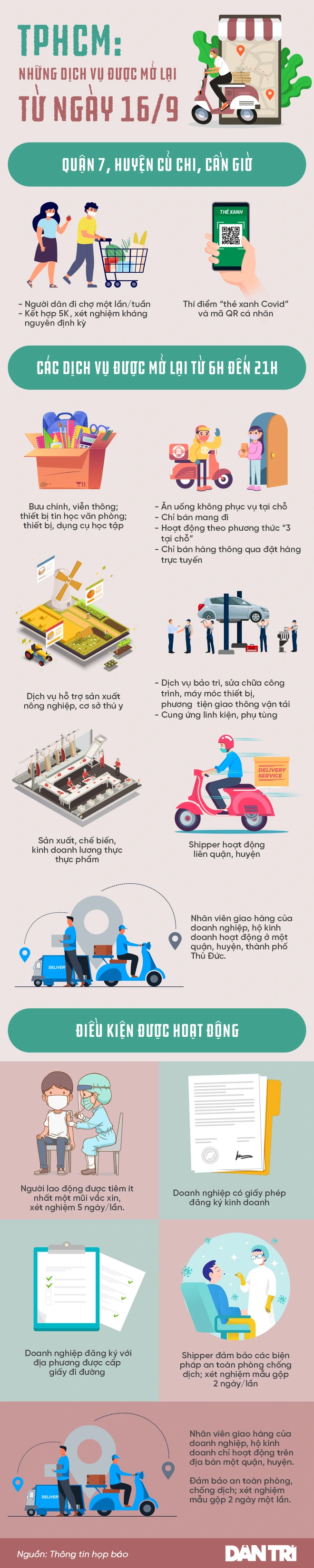 Dịch vụ nào được mở lại tại TPHCM từ ngày 16/9?