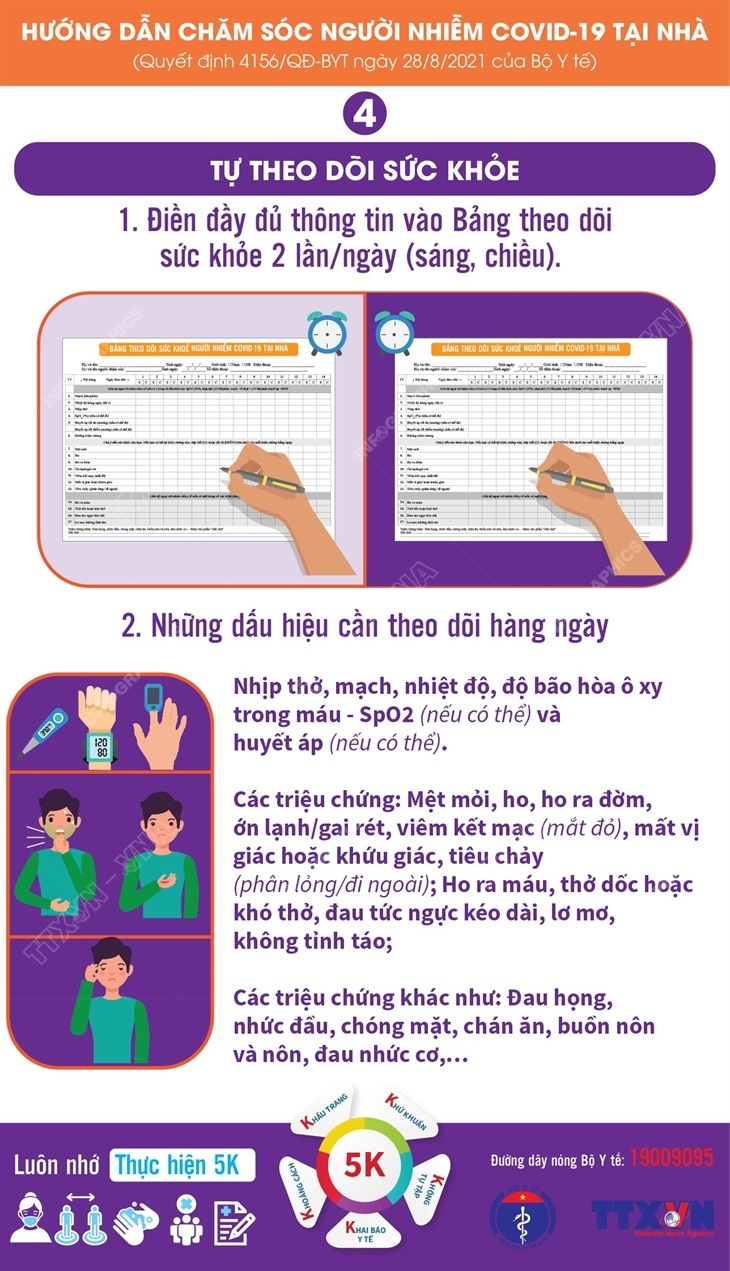 Những dấu hiệu người nhiễm COVID-19 cần theo dõi hàng ngày tại nhà gồm có: Nhịp thở, mạch, nhiệt độ, độ bão hòa ôxy trong máu...