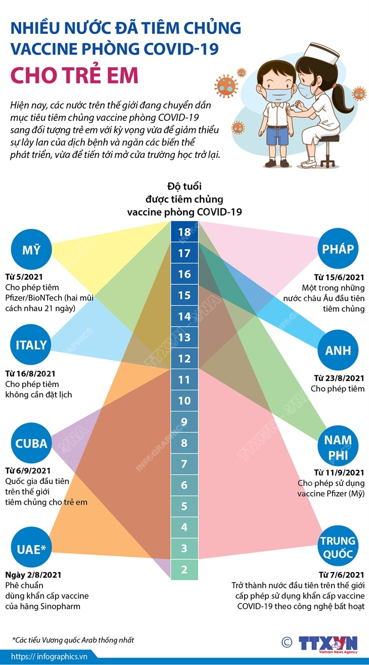 Nhiều nước đã tiêm chủng vaccine phòng Covid-19 cho trẻ em