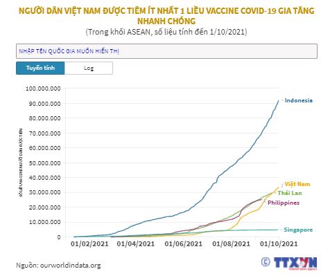 Mặc dù xuất phát điểm chậm, tỷ lệ người dân Việt Nam được tiêm ít nhất 1 liều vaccine phòng COVID-19 gia tăng nhanh chóng trong thời gian gần đây. Tính đến 1/10/2021, đã có trên 34% người dân Việt Nam được tiêm ít nhất 1 liều vaccine phòng COVID-19.