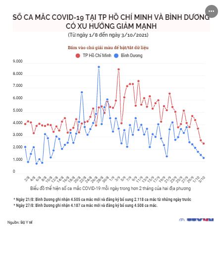 Với những nỗ lực trong tiêm phủ vaccine và xét nghiệm, những ngày qua, số ca mắc ở TP Hồ Chí Minh và Bình Dương - 2 địa phương có số số ca mắc COVID-19 cao nhất cả nước - đang có xu hướng giảm mạnh.