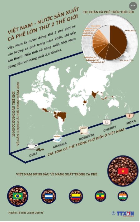Việt Nam là nước sản xuất cà phê lớn thứ 2 thế giới