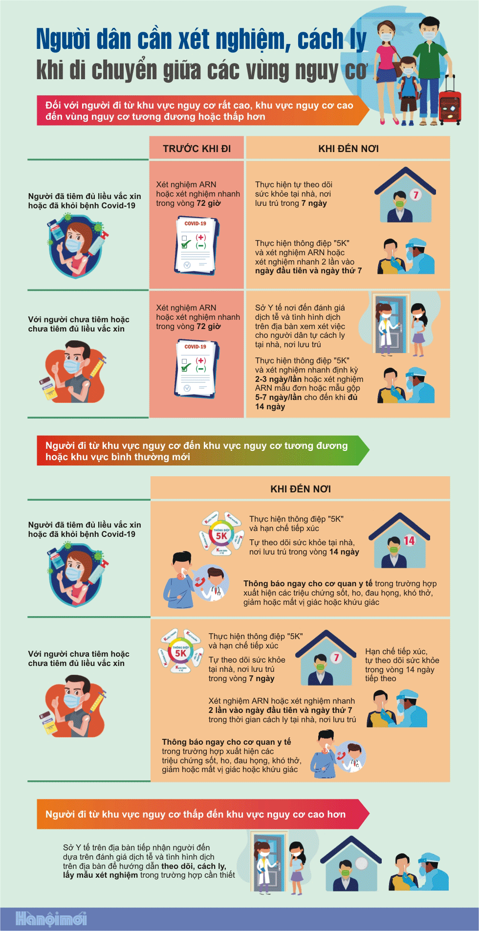 Người dân cần xét nghiệm, cách ly khi di chuyển giữa các vùng nguy cơ