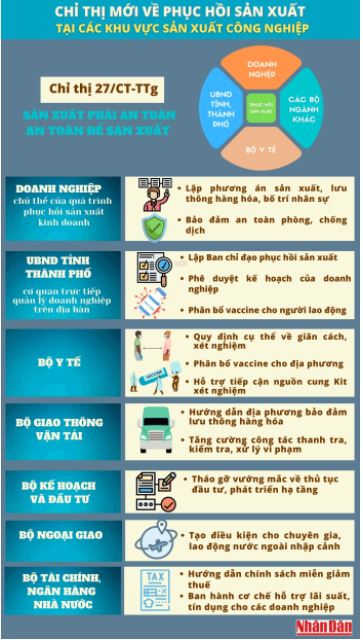 Thủ tướng Chính phủ vừa ban hành Chỉ thị 27/CT-TTg về việc phục hồi sản xuất tại các khu vực sản xuất công nghiệp trong bối cảnh phòng, chống dịch bệnh Covid-19.