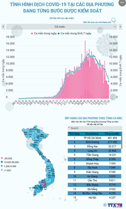 Hiện nay, số ca mắc COVID-19 trên cả nước có xu hướng giảm rõ rệt. Biểu đồ tổng hợp về diễn biến dịch cho thấy, nhiều địa phương như: Quảng Ninh, Vĩnh Phúc, Bắc Giang, Phú Thọ, Ninh Bình, Bắc Ninh, Lạng Sơn, Sơn La, Yên Bái… đã kiểm soát được dịch COVID-19. Các địa phương khác, tình hình dịch cơ bản vẫn đang được kiểm soát.