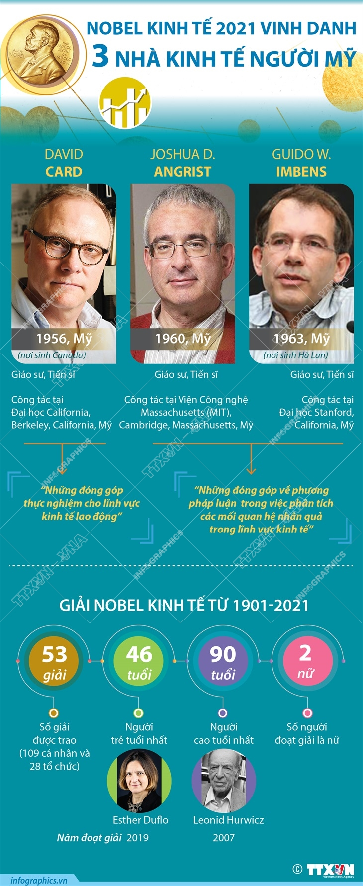Ngày 11/10/2021, Giải Nobel Kinh tế năm 2021 đã được trao cho ba nhà kinh tế David Card, Joshua D. Angrist và Guido W. Imbens. Theo thông báo Viện Hàn lâm Khoa học Hoàng gia Thụy Điển, ba nhà kinh tế trên được vinh danh về những đóng góp thực nghiệm cho lĩnh vực kinh tế lao động và những đóng góp về phương pháp luận trong việc phân tích các mối quan hệ nhân quả trong lĩnh vực kinh tế.
