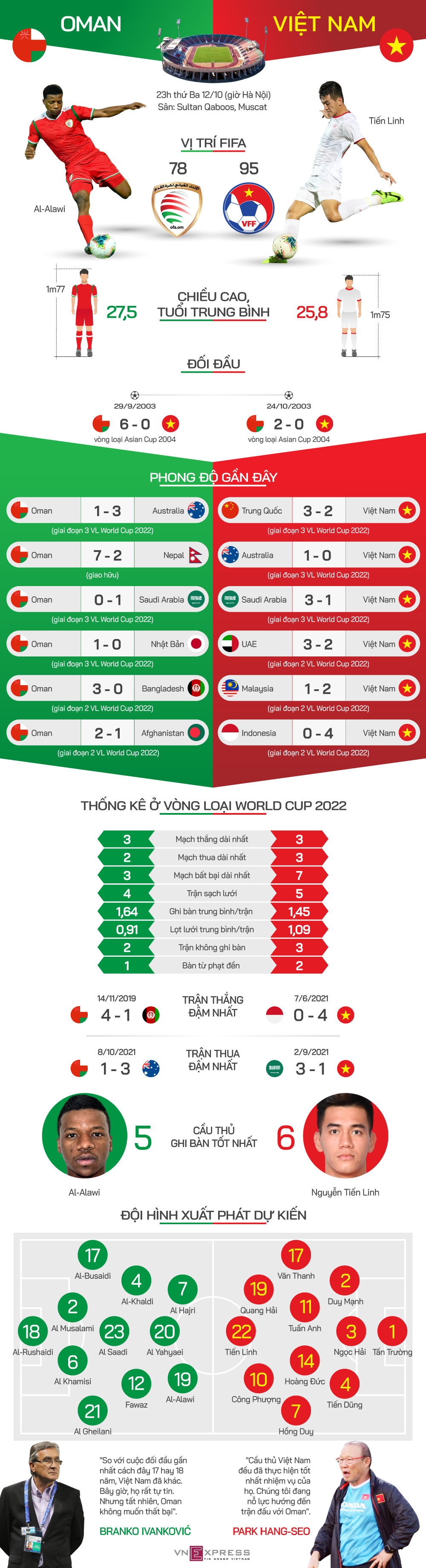 Xét về đối đầu, thành tích hiện tại và hình thể, Oman đều trên cơ. Nhưng, Việt Nam rất biết cách tạo đột biến mỗi khi ở thế "cửa dưới" dưới thời HLV Park Hang-seo
