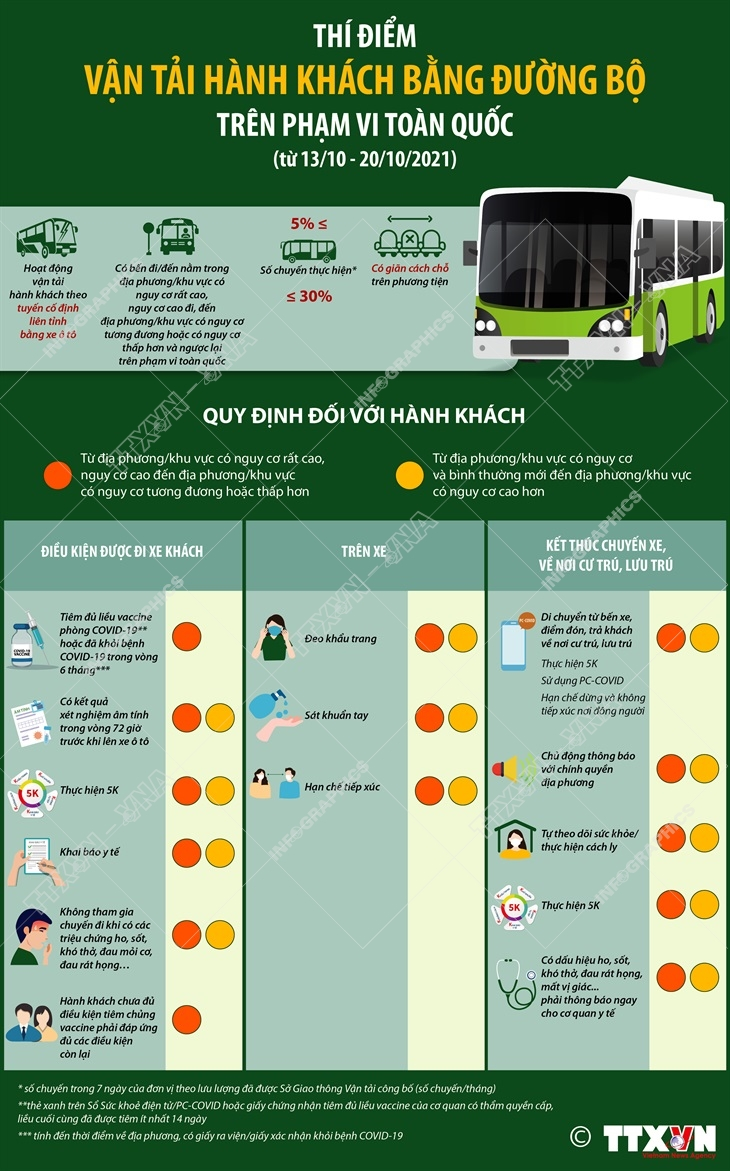 Thí điểm vận tải hành khách bằng đường bộ trên phạm vi toàn quốc (từ 13/10 - 20/10/2021)