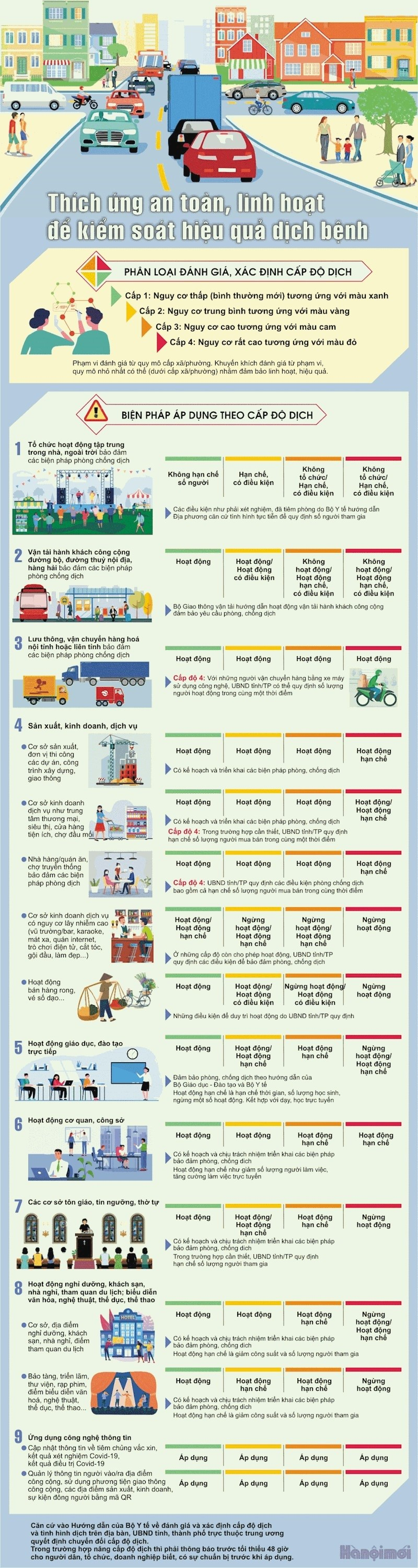 Những nội dung chính ''Thích ứng an toàn, linh hoạt để kiểm soát hiệu quả dịch bệnh'' Theo Nghị quyết số 128/NQ-CP quy định tạm thời “Thích ứng an toàn, linh hoạt, kiểm soát hiệu quả dịch Covid-19” của Chính phủ vừa ban hành, cả nước sẽ không giãn cách xã hội theo các chỉ thị 15, 16, 19. Các hoạt động, đi lại, kinh doanh, sản xuất của người dân cũng có nhiều điểm mới.