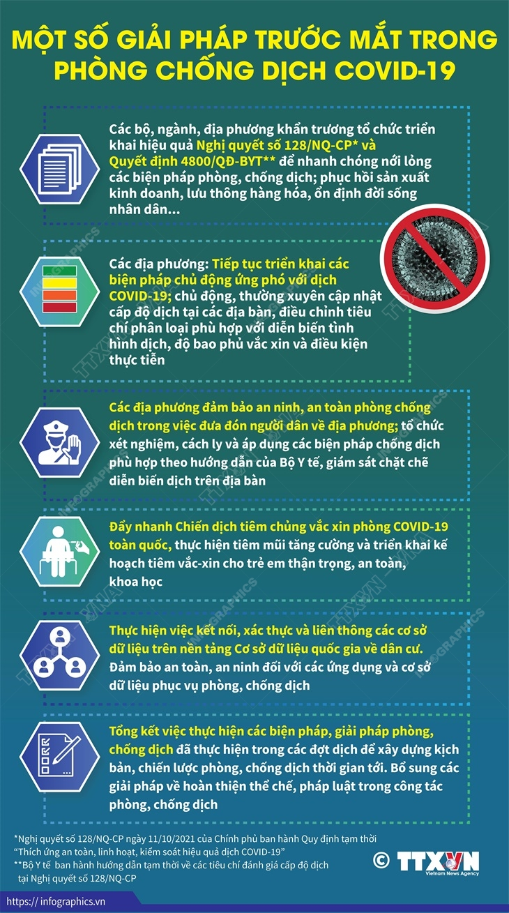 Đối với Việt Nam, một số kinh nghiệm bước đầu được đúc kết từ thực tiễn phòng chống dịch năng lực ứng phó của hệ thống y tế ngày một nâng lên chiến lược vắc xin đã phát huy hiệu quả giúp chúng ta chủ động hơn trong việc chuyển hướng chiến lược phòng chống dịch. Thời gian tới cần thực hiện một số giải pháp sau.