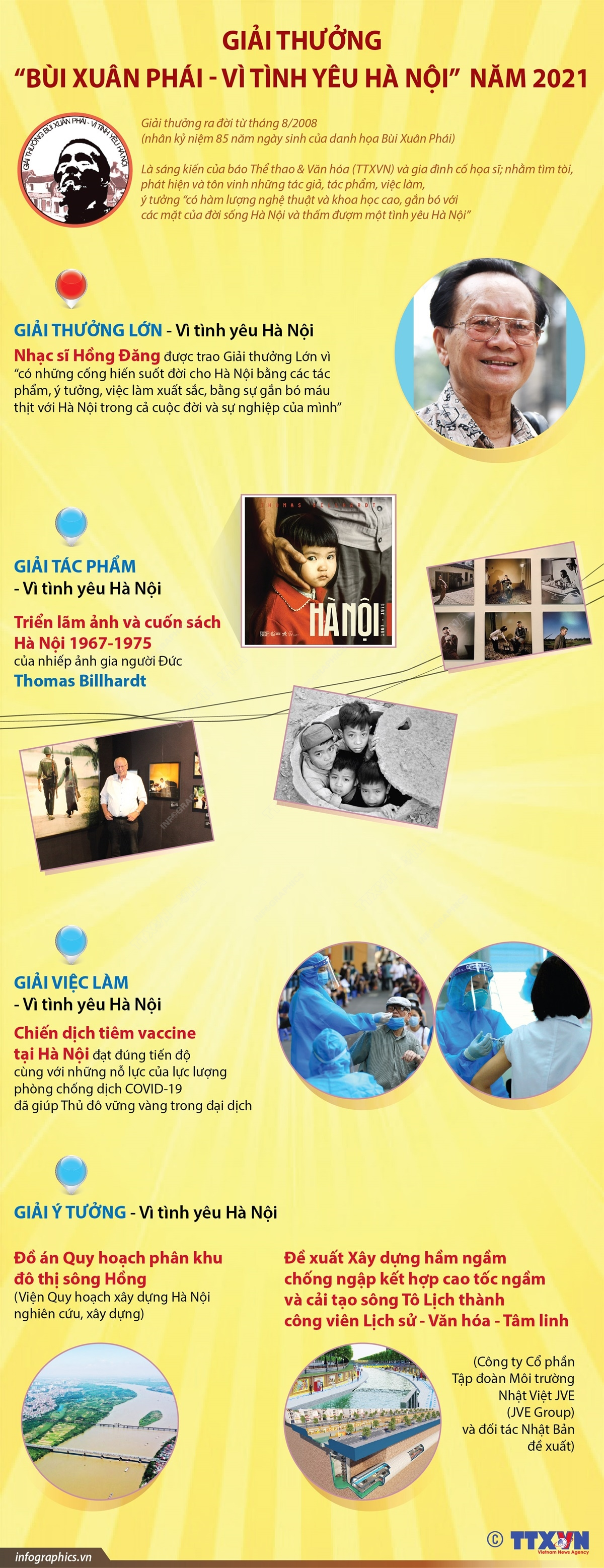 Ngày 28/10/2021, tại Hà Nội, Ban tổ chức Giải thưởng “Bùi Xuân Phái -Vì Tình yêu Hà Nội” lần thứ 14 năm 2021 đã trao 5 giải thưởng, trên 4 hạng mục cho các tác giả, tác phẩm đoạt giải. Giải thưởng do báo Thể thao và Văn hóa (Thông tấn xã Việt Nam) và Quỹ Bùi Xuân Phái tổ chức.