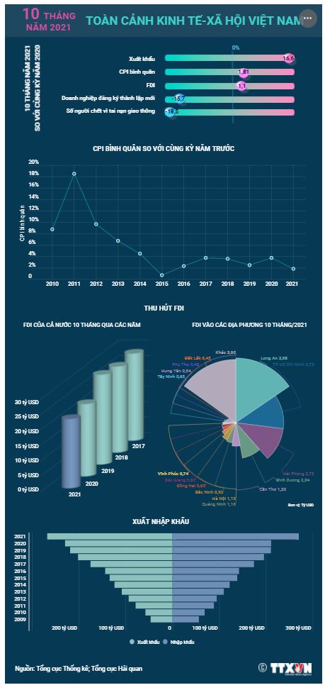 Toàn cảnh kinh tế-xã hội Việt Nam 10 tháng năm 2021