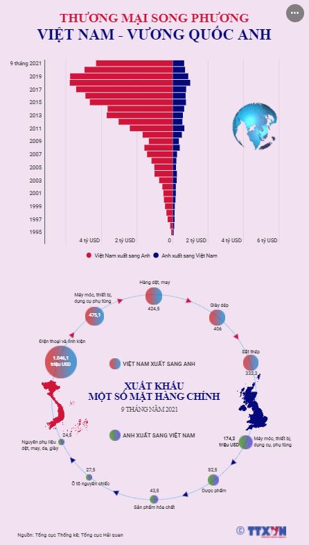 Thương mại song phương giữa Việt Nam và Anh trong những năm gần đây chứng kiến mức tăng trưởng cao và còn nhiều tiềm năng để phát triển khi Hiệp định Thương mại tự do Việt Nam-Anh (UKVFTA) trở thành động lực mới thúc đẩy quan hệ thương mại giữa hai nước.