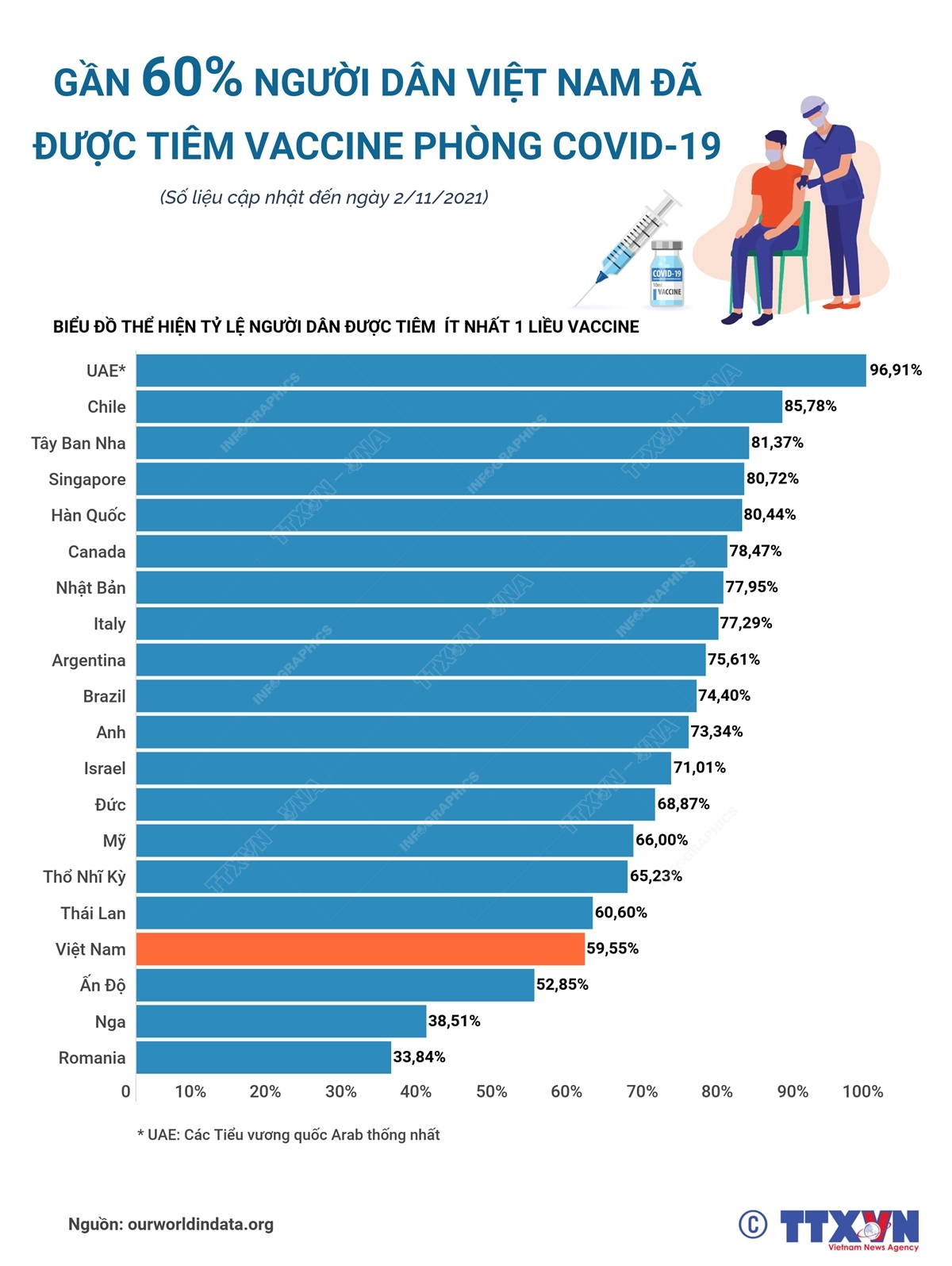 Để xây dựng và thực hiện lộ trình “sống chung với COVID-19” trong dài hạn, việc tiêm vaccine phòng COVID-19 đang là một trong những chiến lược được nhiều quốc gia đẩy mạnh. Việt Nam đã và đang tăng tốc tiêm chủng trong thời gian gần đây, hiện gần 60% dân số đã được tiêm ít nhất 1 mũi.