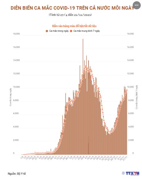 Trong những ngày gần đây, số mắc COVID-19 mới trên cả nước đang tăng lại. Theo các chuyên gia, số ca mắc tăng trở lại là điều khó tránh khỏi khi chúng ta thực hiện mở cửa. Theo Bộ Y tế, ngày 21/11/2021, cả nước ghi nhận 9.889 ca mắc COVID-19 mới (tăng 364 ca so với ngày trước đó).