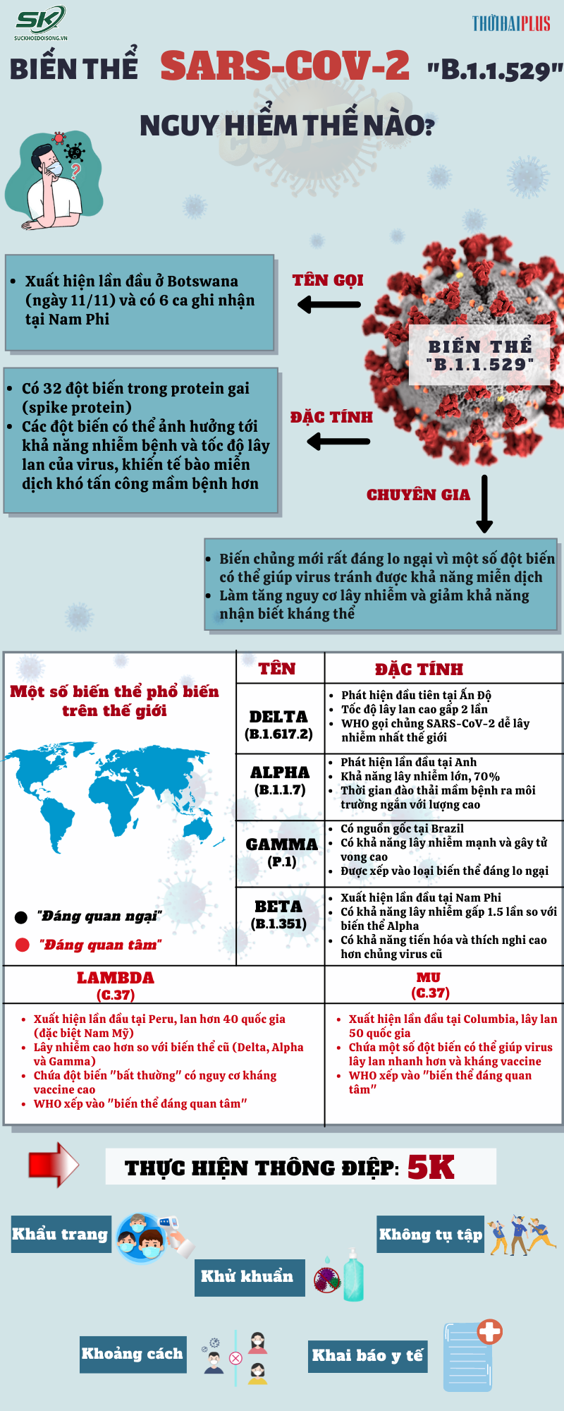 Biến thể mới mang tên B.1.1.529 có tới 32 đột biến trong protein gai, bộ phận giúp virus SARS-CoV-2 xâm nhập tế bào con người. Các đột biến ở protein gai có thể ảnh hưởng đến khả năng truyền bệnh và lây lan của virus, cũng khiến các tế bào miễn dịch khó tấn công lại mầm bệnh hơn.