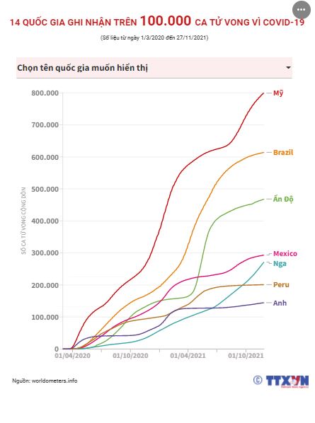 Gần hai năm kể từ khi Tổ chức Y tế thế giới (WHO) gọi COVID-19 là đại dịch toàn cầu, thế giới vẫn chưa thoát ra khỏi cuộc khủng hoảng này. Virus SARS-CoV-2 liên tục đột biến, tạo ra các biến chủng mới nguy hiểm hơn, dễ lây lan hơn, khiến số ca mắc mới và tử vong vẫn không ngừng gia tăng. Hiện có 14 quốc gia ghi nhận trên 100.000 ca tử vong vì COVID-19, trong đó Mỹ vẫn là quốc gia chịu ảnh hưởng nặng nề nhất với gần 800 nghìn ca tử vong tiếp đến Brazil với trên 614 nghìn ca tử vong Ấn Độ với trên 468 nghìn ca tử vong…