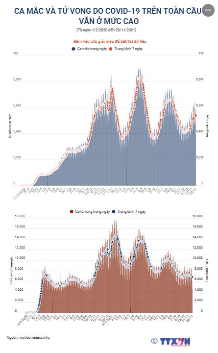 Số ca mắc bệnh và tử vong do COVID-19 trung bình 7 ngày trên thế giới hiện vẫn ở mức cao, trên 534.000 ca mắc và 6.800 ca tử vong mỗi ngày.
