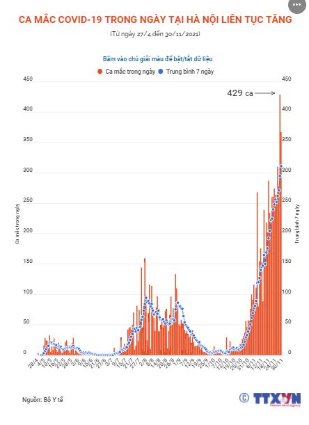Ca mắc COVID-19 trong những ngày gần đây tại Hà Nội liên tục tăng cao, có nhiều chùm ca bệnh phức tạp, lây lan nhanh. Ngày 30/11/2021, Hà Nội ghi nhận 367 ca mắc COVID-19, là ngày thứ 3 liên tiếp thủ đô ghi nhận trên 300 ca mắc trong ngày.
