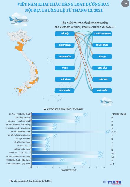 Việt Nam khai thác hàng loạt đường bay nội địa thường lệ từ tháng 12/2021