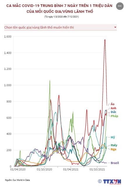 Ca mắc Covid-19 trung bình 7 ngày trên 1 triệu dân của mỗi quốc gia/vùng lãnh thổ