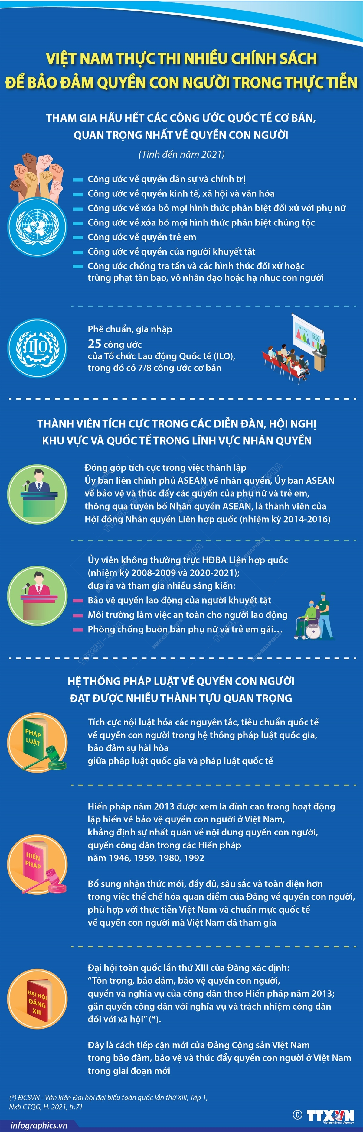 Việt Nam thực thi nhiều chính sách để bảo đảm quyền con người trong thực tiễn
