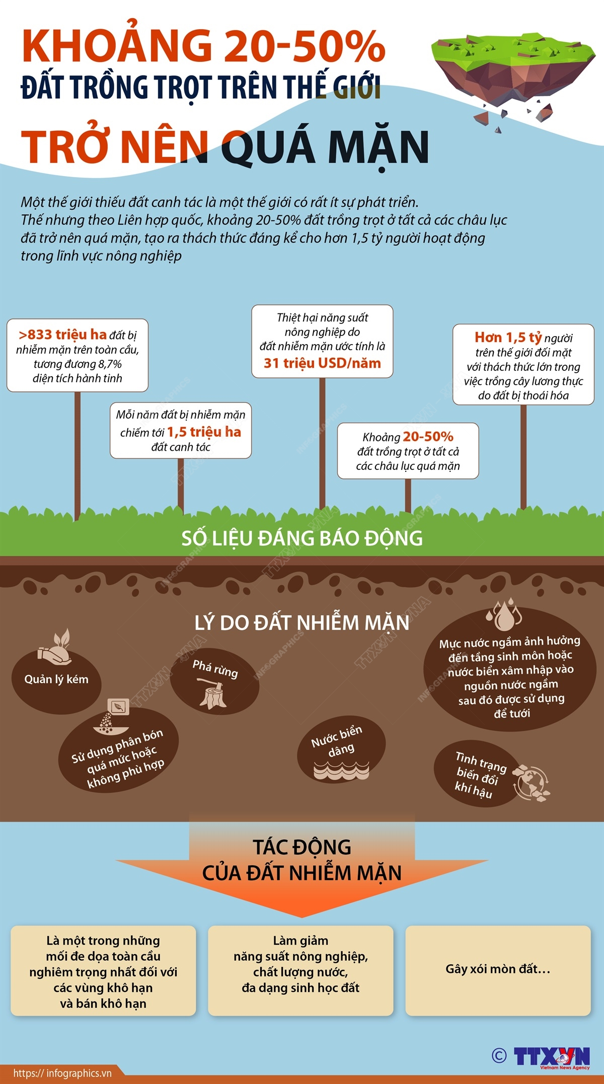 Một thế giới thiếu đất canh tác là một thế giới có rất ít sự phát triển. Thế nhưng theo Liên hợp quốc, khoảng 20-50% đất trồng trọt ở tất cả các châu lục đã trở nên quá mặn, tạo ra thách thức đáng kể cho hơn 1,5 tỷ người hoạt động trong lĩnh vực nông nghiệp.