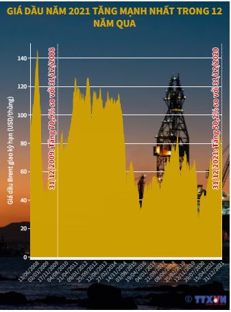 Năm 2021, giá dầu thế giới ghi nhận mức tăng hằng năm lớn nhất kể từ năm 2009 nhờ kinh tế toàn cầu phục hồi sau giai đoạn suy giảm vì đại dịch COVID-19 và kế hoạch kiềm chế sản lượng của Tổ chức các Nước Xuất khẩu Dầu mỏ (OPEC).