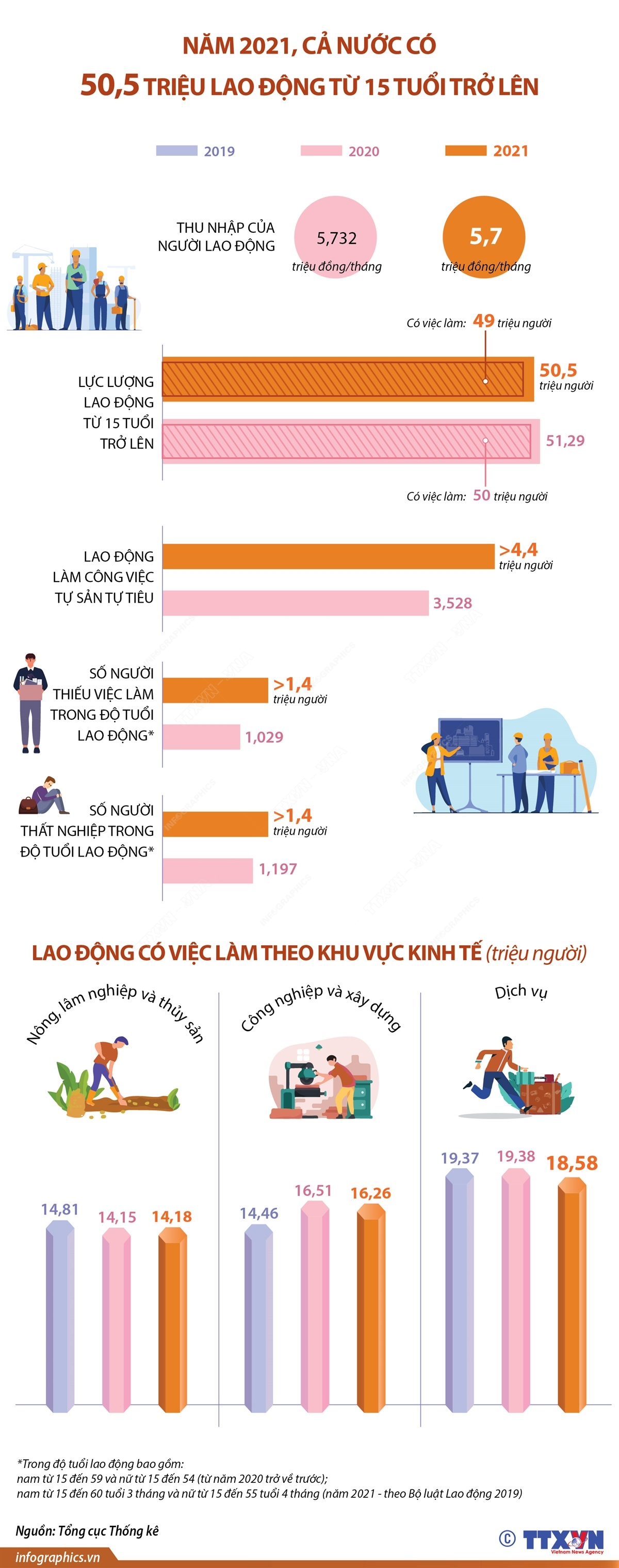 Năm 2021: Cả nước có 50,5 triệu lao động từ 15 tuổi trở lên