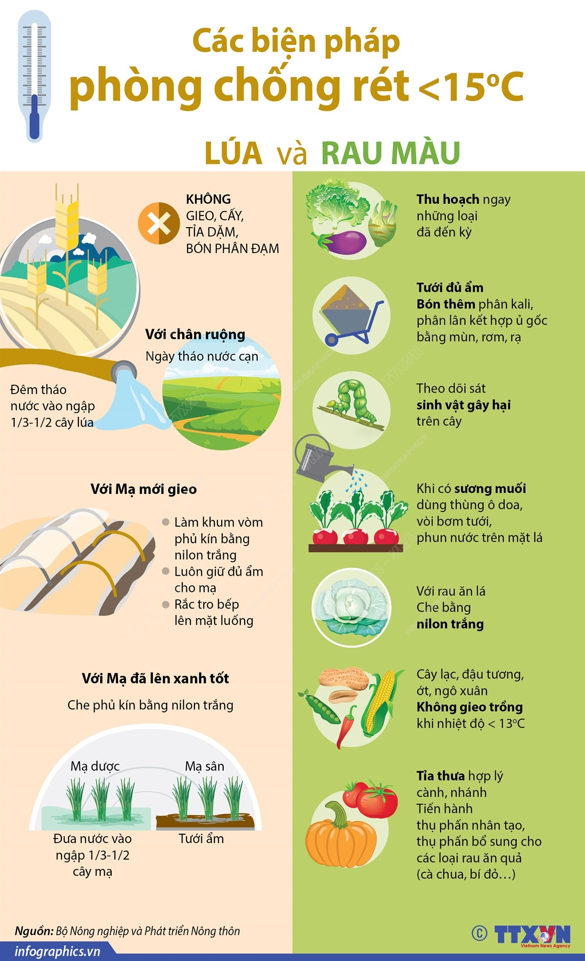 Các biện pháp phòng chống rét dưới 15 độ C cho lúa và rau màu