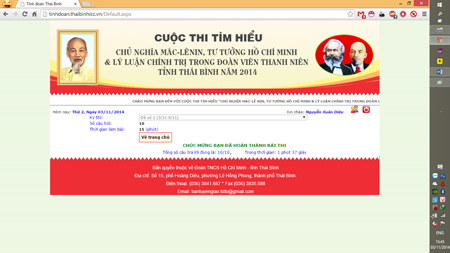 Tỉnh đoàn Tổ chức thi tìm hiểu Chủ nghĩa Mác – Lênin, tư tưởng Hồ Chí Minh và lý luận chính trị trực tuyến trên internet