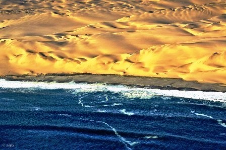 Bãi cát kéo dài mãi tới rìa mép của Đại Tây Dương. Dòng nước mát lạnh của biển khơi đánh dạt lại bờ cát của sa mạc Namib tạo nên một khung cảnh đẹp như chốn thần tiên.