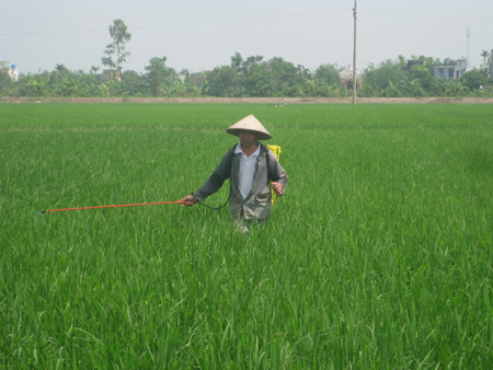 Xác định đối tượng sâu bệnh gây hại chủ yếu trên diện tích lúa gieo sạ, chúng tôi đã về thăm cánh đồng khu Thống Nhất - một trong những khu có diện tích gieo sạ lớn nhất của Thị trấn. Đang phun thuốc trên mảnh ruộng 3,5 sào của gia đình, bác Trương Văn Sĩ cho biết: “Ngay sau khi có thông báo của HTX DVNN về hiện tượng sâu bệnh gây hại lúa, ngày nào tôi cũng tranh thủ ra thăm đồng. Phát hiện thấy sâu cuốn lá, rầy và khô vằn ở những chỗ gieo sạ dày, tôi đã mua thuốc về phun theo sự hướng dẫn của HTX để hạn chế không cho lây lan ra khắp ruộng”. Vừa loay hoay căng ni lông xung quanh mảnh ruộng 6 sào của nhà mình, bác Vũ Thị Nhân nói chuyện với chúng tôi: “Mảnh ruộng này tôi gieo sạ giống BC15, do chăm sóc theo đúng quy trình hướng dẫn của HTX DVNN nên lúa phát triển khá tốt, nhưng cũng chính vì vậy mà bị chuột hoành hành phá hoại. Tôi đã phải chi hơn 400.000 đồng để mua ni lông và cọc tre về chăng mà chuột vẫn vào trong ruộng cắn lúa”.