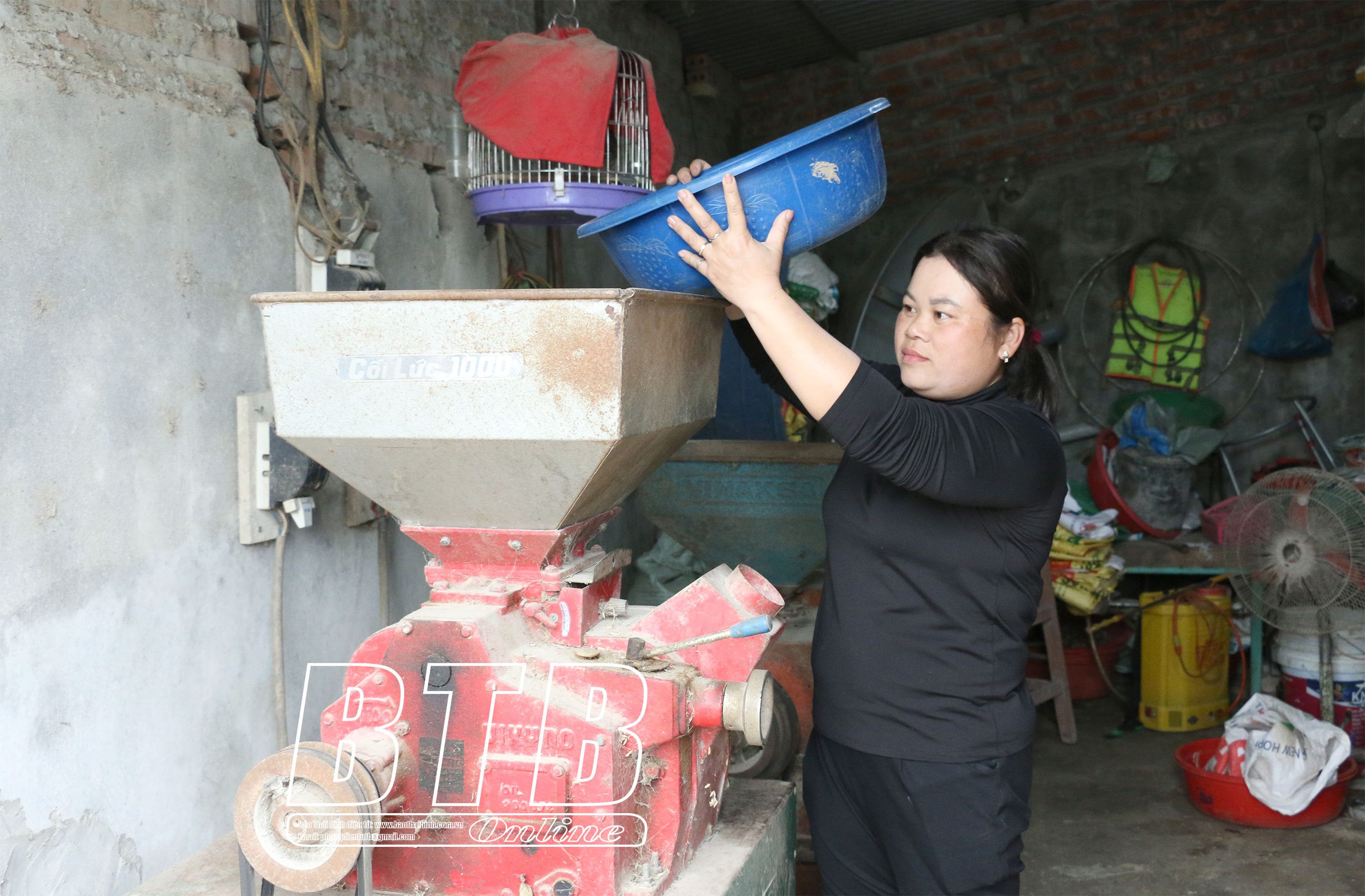 Ngoài cấy lúa, chị Phạm Thị Liên, thôn Vô Ngại, xã Tam Quang, huyện Vũ Thư còn làm thêm dịch vụ xay xát gạo.