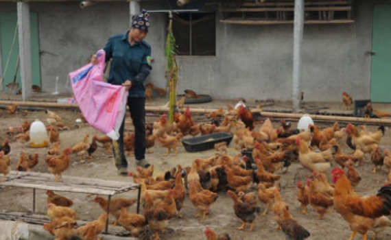 Chăm sóc đàn gà tại gia trại của anh Đức Minh Tịnh (khu chăn nuôi tập trung xã Đông Cường). Ảnh: Thành Tâm