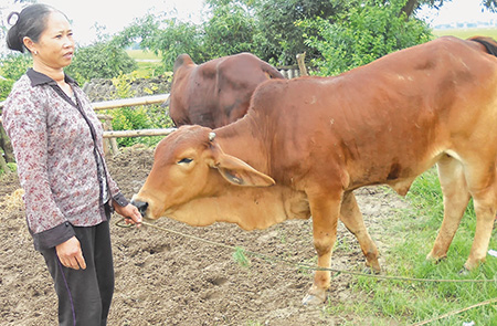 Chị Vũ Thị Hội (thôn Hy Hà, xã Quỳnh Ngọc, huyện Quỳnh Phụ) đầu tư nuôi bò từ nguồn vốn vay ưu đãi của Ngân hàng Chính sách xã hội.