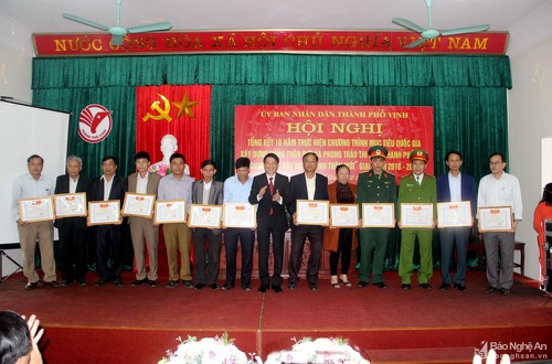 TP.Vinh khen thưởng các tập thể có thành tích xuất sắc trong 10 năm xây dựng NTM. Ảnh: Quang An